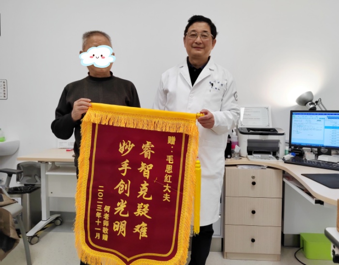 錦旗上的那句“妙手創(chuàng)光明”很寫實(shí),11月初毛思紅醫(yī)療組團(tuán)隊(duì)為左眼患有白內(nèi)障的何老師做了飛秒激光白內(nèi)障摘除聯(lián)合高端功能性人工晶狀體植入術(shù)。