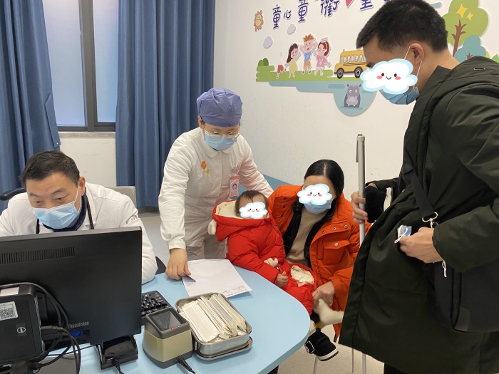 從為寶寶掛號、測體溫、詢問病史、就診,到取藥喂藥,楊淑嫻還詳細交待注意事項,并特意在喂藥針筒上做了可觸摸的標記,方便夫婦倆后續(xù)喂藥時,確保劑量正確。