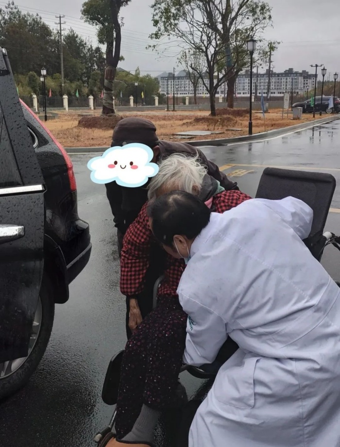 1月20日,天色灰蒙,清冷的小雨剛剛停歇,在峽口鎮(zhèn)衛(wèi)生院門前,一位身著白大褂的醫(yī)生,抱起身旁輪椅上白發(fā)蒼蒼的老人,讓她坐進車里,駕車離開。