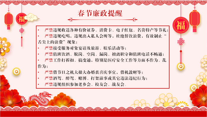 守廉潔底線 過清正“廉節(jié)” 文章來源:紀(jì)檢監(jiān)察室 作者:黃盈盈 點(diǎn)擊數(shù):1486 更新時(shí)間:2024-02-05 上一篇: 好消息!瞿佳教授、吳文燦教授名醫(yī)工作站落戶衢州 下一篇: 囊是假的,痛卻很“石”在