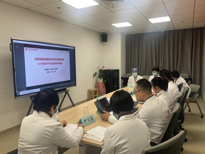 評審會上,醫(yī)院呼吸與危重癥醫(yī)學科學科帶頭人、院黨委書記陳成水教授和執(zhí)行院長紀偉平致辭,介紹了我院作為四省邊際中心醫(yī)院近2年多來的迅猛發(fā)展和未來愿景,科室主任金旭如以詳實的數(shù)據(jù)介紹了科室發(fā)展概況和間質(zhì)性肺疾病規(guī)范診療建設情況,并以現(xiàn)場視頻展示的的方式向評審專家展示病房、門診、呼吸內(nèi)鏡、影像、病理、肺功能等間質(zhì)性肺疾病相關工作情況。