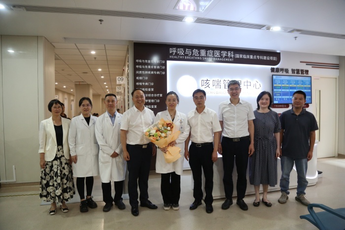 徐天才一行先后來到門診、急診,走進呼吸與危重癥醫(yī)學(xué)科、泌尿外科等診室,詢問醫(yī)務(wù)工作者的工作和生活情況,送上鮮花和祝福,對他們長期以來的辛勤工作和無私奉獻表示感謝。