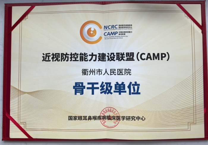 全市首家!我院眼科獲中國(guó)近視防控能力建設(shè)聯(lián)盟(CAMP)骨干級(jí)單位