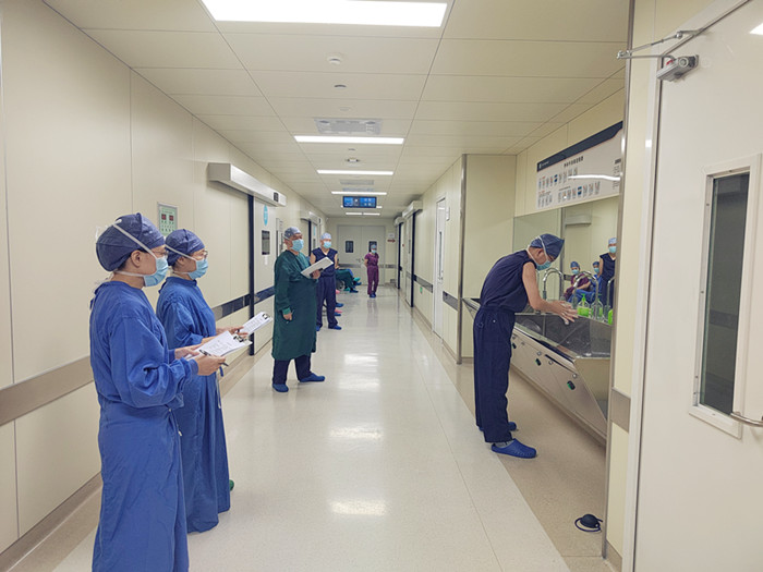 經(jīng)前期初賽選拔,來自肝膽外科、手術(shù)室、 醫(yī)學(xué)美容科、神經(jīng)外科、重癥監(jiān)護室、胃外科、肛門盆底外科、乳甲外科、手足外創(chuàng)傷骨科、口腔科的10位參賽選手參加決賽,賽事以“理論+外科手消毒操作”的形式進行。