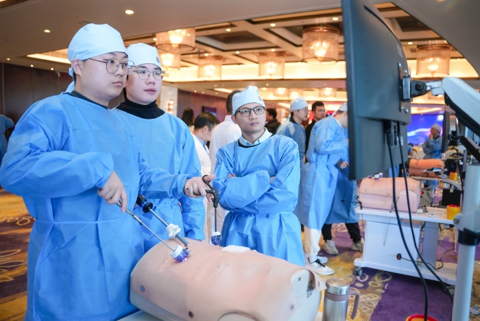 比賽分為初賽和決賽,初賽內(nèi)容為腸腸吻合術(shù),經(jīng)評審專家組評分,15家醫(yī)院入圍決賽。決賽形式為多站式現(xiàn)場比賽,包含理論考核、腹腔鏡下手術(shù)操作、多學(xué)科微創(chuàng)訓(xùn)練系統(tǒng)操作和國產(chǎn)機(jī)器人手術(shù)操作環(huán)節(jié)。鄭臨海帶領(lǐng)外科住培團(tuán)隊?wèi){借默契的配合、扎實的基本功勇奪桂冠。