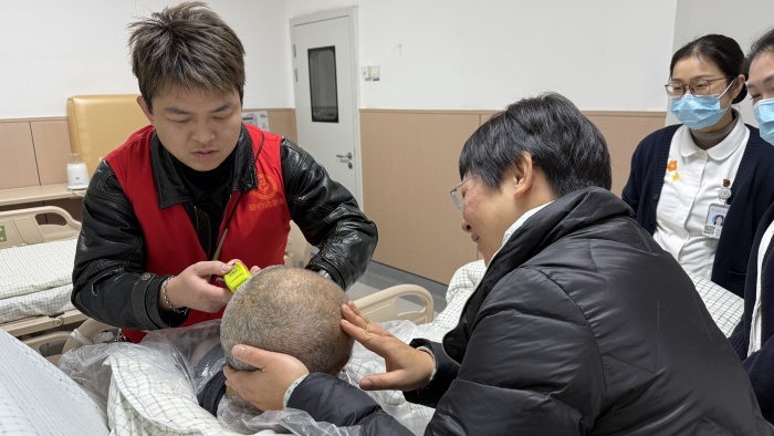 “他愿意來病床前為我父親義務(wù)理發(fā),作為家屬我很欣慰?!标惔鬆?shù)呐畠赫f。