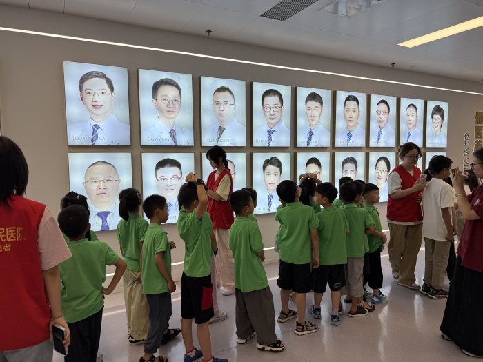 開營首日的“職場探秘”成了孩子們最期待的活動。在老師們的引導(dǎo)下,萌娃牽著小手,排著整齊的隊(duì)伍穿行于院區(qū)。走進(jìn)人才學(xué)科長廊,墻上展示的“醫(yī)學(xué)超人”瞬間抓住了孩子們的目光,有的不禁歡呼道:“這是我媽媽!”。