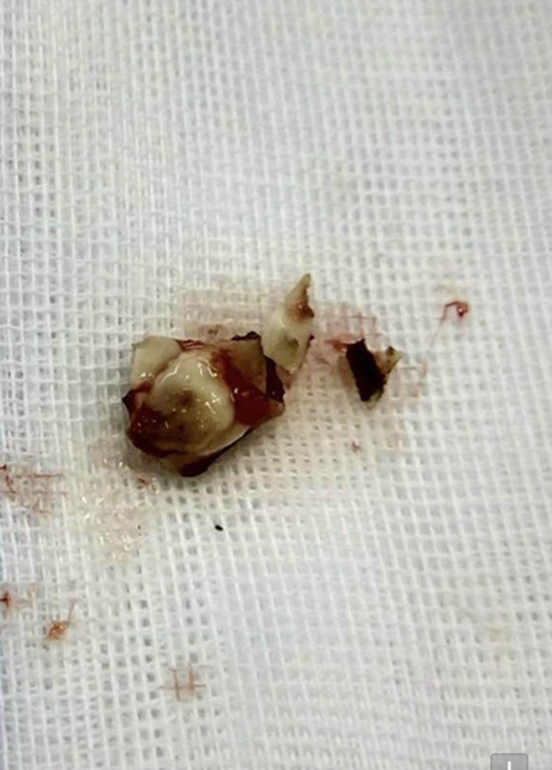 ????在嚴密的循環(huán)、呼吸監(jiān)護下,姜建洋和盛建輝醫(yī)生開始操作支氣管鏡為林先生試取異物。氣管鏡下可見左支氣管有一異物堵塞管腔,若不盡快取出,任由其繼續(xù)生長后果將不堪設想!因異物性質(zhì)不定,支氣管鏡下顯示質(zhì)地軟脆,為避免異物鉗取物可能導致異物破碎,醫(yī)生為林先生施行了更為安全的“支氣管鏡下網(wǎng)籃套取術(shù)”。仔細探尋,小心套取,異物終于松動,套住異物的同時,在場的醫(yī)護人員也緊張地屏住呼吸,大家目光聚集在氣管鏡屏幕上,套取、上提、退鏡!短短二十分鐘,當異物取出的那一瞬間,現(xiàn)場所有人都長長地出了一口氣!