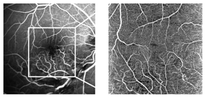 ??? OCT血管成像(OCTA)是一種無創(chuàng)、快速、分層顯示眼底視網膜及脈絡膜血管的嶄新科技,是目前最前沿的技術之一。主要應用于眼科各種疾病檢查,尤其眼底病的診斷,如黃斑變性、糖尿病性視網膜病變、視網膜靜脈阻塞、青光眼、高度近視等等疾病。相比傳統(tǒng)的眼底造影檢查有四大優(yōu)勢。