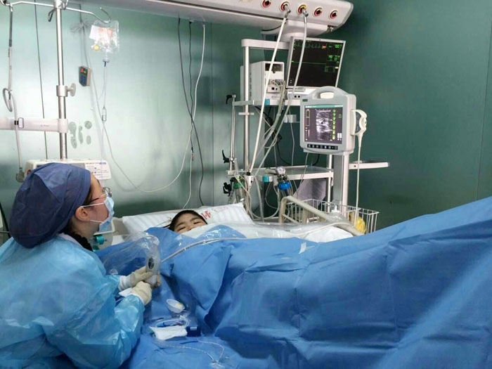 護(hù)士在血管超聲設(shè)備引導(dǎo)下進(jìn)行PICC穿刺置管(照片由作者提供)