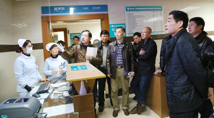 ??? 1月15日上午,市衛(wèi)生局局長陳根成一行來到我院現(xiàn)場體驗“智慧衛(wèi)生健康衢州”醫(yī)患服務(wù)平臺項目,我院院長陳震宏及相關(guān)職能負(fù)責(zé)人參加了體驗活動。