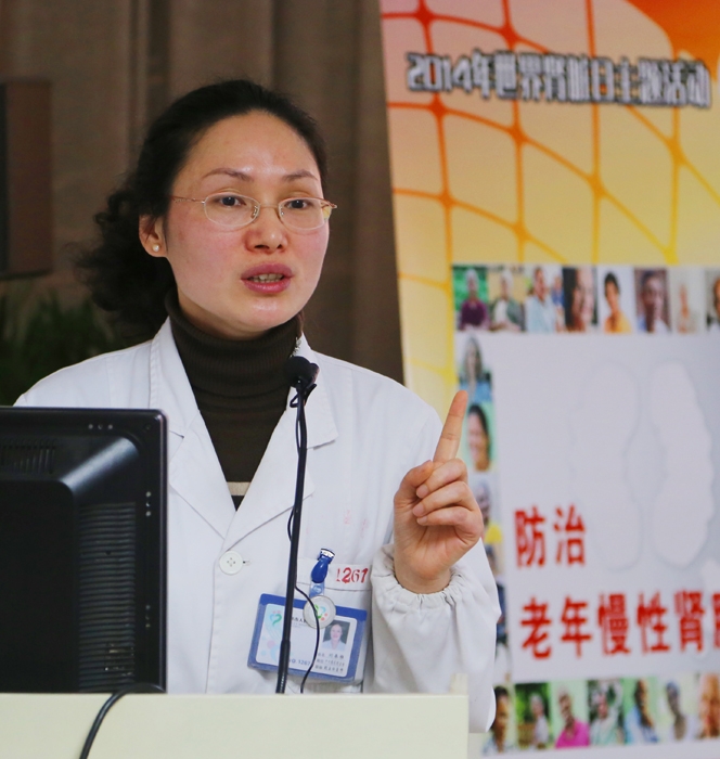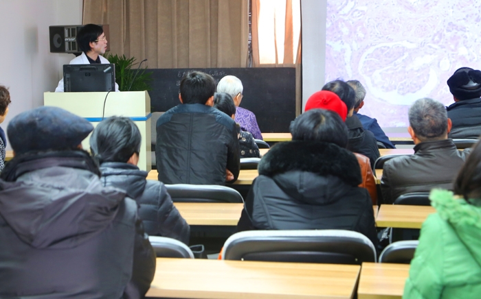 ??? 腎內科吳金土主任、劉春雅副主任為病友們講解了腎臟病的飲食、終末期腎病的透析選擇等相關常識,并當場解答病友提出的問題,現(xiàn)場還有專職護士為病友量血壓、測血糖。此次腎友會活動,為醫(yī)患及患患之間搭建了一個溝通交流的平臺,通過開展知識講座等活動,進一步提高了患者護腎的意識及腎病的健康知識。