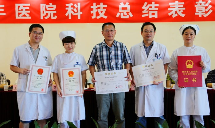 ??? 接著,吳善水副院長(zhǎng)宣讀了2012—2013年度醫(yī)院科技獎(jiǎng)、科技立項(xiàng)獎(jiǎng)、重點(diǎn)創(chuàng)新團(tuán)隊(duì)獎(jiǎng)、醫(yī)療新技術(shù)獎(jiǎng)、科研論文獎(jiǎng)、優(yōu)秀臨床帶教老師等表彰文件。在頒獎(jiǎng)儀式上,醫(yī)療新技術(shù)獎(jiǎng),2012年市科技進(jìn)步獎(jiǎng)、省醫(yī)藥衛(wèi)生創(chuàng)新獎(jiǎng),2013年省醫(yī)藥衛(wèi)生創(chuàng)新獎(jiǎng),2013年科研立項(xiàng)獎(jiǎng)的26名獲獎(jiǎng)人員及創(chuàng)新團(tuán)隊(duì)獲獎(jiǎng)代表在熱烈的掌聲中依次上臺(tái)領(lǐng)獎(jiǎng)。