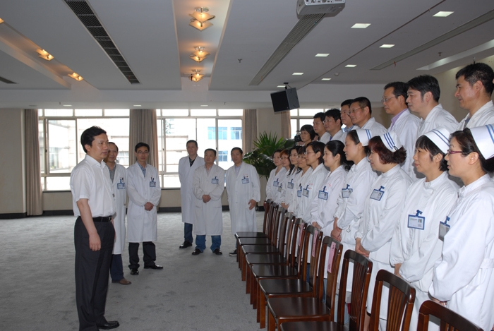 ??? 5月13日上午,市委書記趙一德在市委秘書長李鋒、市衛(wèi)生局局長陳根成陪同下視察我院。我院班子成員、部分處室負責人陪同。