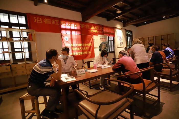 在江山市大陳村,專家團隊在私立萃文中學(xué)舊址設(shè)立義診點,開展“學(xué)黨史、辦實事”大型義診活動。一邊是健康宣教、測血壓、測血糖的護理專家團隊,另一邊是呼吸與危重癥醫(yī)學(xué)科、心血管內(nèi)科、內(nèi)分泌代謝病科等10多個??茍F隊,義診現(xiàn)場人潮涌動,一個半小時共接待前來咨詢的村民近百人次。