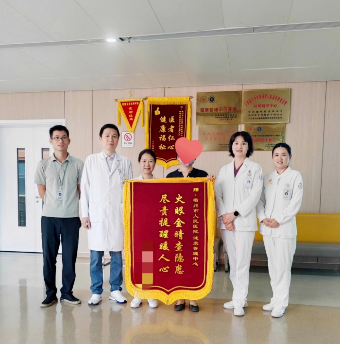 “火眼金睛查隱患,盡責(zé)提醒暖人心” 十二個燙金大字在紅彤彤的絨面上映著暖光。日前,這面承載著特殊意義的錦旗,被送到了我院健康管理中心,錦旗背后,藏著一段醫(yī)護(hù)人員與時間賽跑、為生命護(hù)航的動人故事。